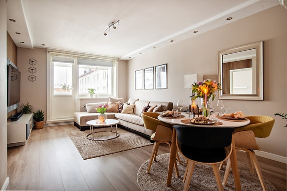 En lys 2-roms andelsleilighet i 1. etasje med en attraktiv og rolig beliggenhet på Karlsrud/Lambertseter. Dette er et oppussingsobjekt med et godt potensiale! Leiligheten har en god planløsning og store vindusflater som slipper inn mye naturlig lys. Fra stuen er det utgang til en vestvendt innglasset balkong på 7,5 m², som fungerer som en stueforlenger i sommerhalvåret. Vedovnen i stuen varmer godt på kjølige dager. I tillegg disponerer leiligheten både loftsbod og to kjellerboder med god lagringsplass. Her bor du i et etablert område med kort vei til dagligvarebutikker, skoler, barnehager og offentlig transport, samt nærhet til flotte turområder.
