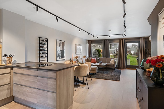Her får du et hyggelig og innbydende hjem med moderne uttrykk, to soverom, delikat bad og praktisk wc-rom. Kjøkken, spiseplass og stue ligger i åpen løsning, fint for både hverdag og sosiale sammenkomster.