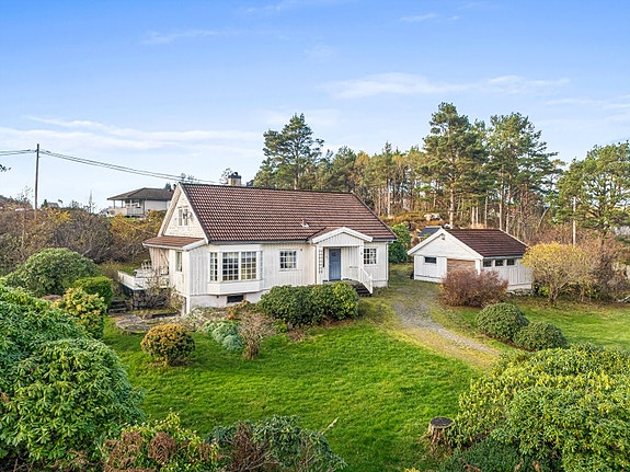 Sunde - Enebolig med garasje på tomt med over 6 mål. Sentral beliggenhet med kort avstand til Husnes sentrum.