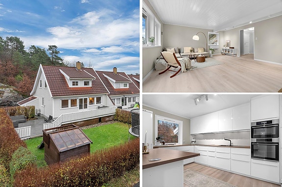 Boligen har en gjennomtenkt planløsning over tre etasjer: Stue og kjøkken i moderne design, tre soverom, flott flislagt bad, praktisk vaskerom og en innredet tv-stue med kontor oppusset i 2023/24. (tv-stue/kontor ikke søkt godkjent). Ute får du et herlig uteområde med plen og plattinger, perfekt for late sommerdager. Godt med parkering på egen tomt samt garasje i rekke like ved.