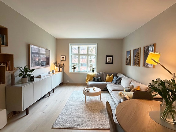 En flott 4-roms leiighet over 2 plan. Leiligheten ligger i et meget attraktivt, usjenert og sentralt boligområde i Lindern Hageby i bydel St. Hanshaugen i Oslo. Eiendommen ligger tilbaketrukket i stille gate. Flott bakgård skjermet for trafikk. Bakgården byr på grønne og flotte fellesarealer med sittegrupper, beplantning, lekearealer m.m.