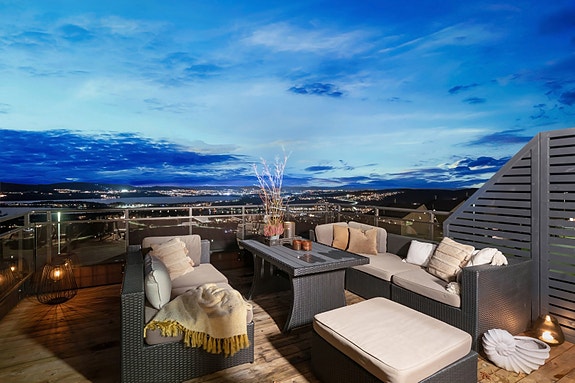 Påkostet enebolig fra 2023 med oppgradert standard, barnevennlig hage og dobbelgarasje. Takterrasse med panoramautsikt.