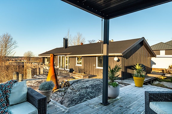En romslig enebolig med vestvendt og solrik beliggenhet i familievennlig område på Begby. Her får du fine, skjermede uteplasser med terrasse og hage som gir gode muligheter for avslapning og sosiale sammenkomster.