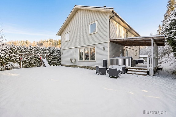 Boligen går over to plan pluss kjeller og har en god planløsning med blant annet 3 stuer, to delikate bad fra 2019 og 4 soverom. Første etasje byr på en åpen og sosial løsning mellom stue og det moderne kjøkkenet fra 2019. Fra stuen er det utgang til en flott, sørvendt terrasseplatting på 30 m². Det er også en praktisk garasje på eiendommen.