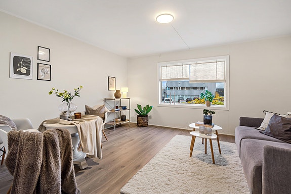 Leiligheten ligger i 2. etasje i en klassisk 8-mannsbolig fra 1970-tallet, og har nylig gjennomgått oppgradering. Oppgraderingen omfatter blant annet utskifting av dører og vinduer, nytt elektrisk anlegg, oppussing av kjøkken og bad, samt legging av nye gulv og oppmaling av vegger og himlinger - alt klart til innflytting!