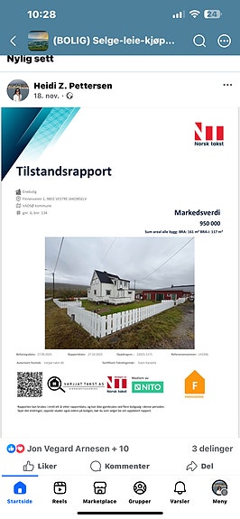 Enebolig i Vestre Jakobselv selges privat. Huset er et oppussings objekt. En god del er gjort med huset, spesielt utvendig. En del arbeid gjenstår utvendig med tak, terrasser, og div.