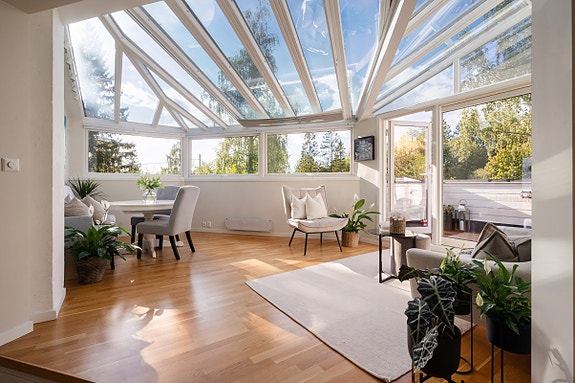Unik 3-R over to plan med generøs takhøyde på 3,8 m | Stue m/glasstak | Solrik balkong | Garasje | Tilbaketrukket