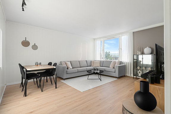 • Lyst og pent fargevalg gjennom hele leiligheten.