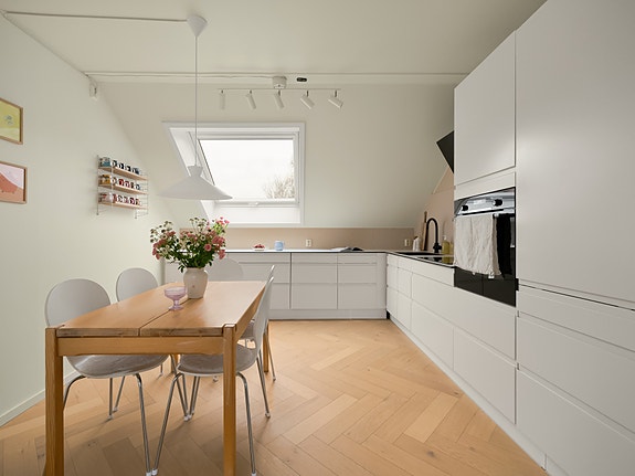 Dette er en vakker og lys 3-roms toppleilighet som ligger skjermet, rolig og tilbaketrukket i grønne omgivelser. Her får du verdifulle kvaliteter som en luftig takterrasse, delikate materialvalg, store rom og mange vindusflater som slipper inn godt med naturlig dagslys.