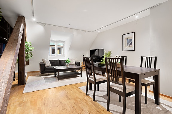 Velkommen til en sentrumsnær toppleilighet over to plan. Leiligheten er beliggende i byggets øverste etasje (3. etasje), med flere gode vindusflater som gir et godt lysinnslipp, og bidrar til en lett og luftig atmosfære. Boligen har en etterspurt beliggenhet kun 2 minutter gange fra Trondheim torg. Leiligheten har et bruksareal på 81 m², og disponerer bl.a. en egen parkeringsplass i kjeller. Dette er leiligheten for deg som ønsker et enkelt liv midt i kjernen av Trondheim. Her har man mulighet til å nyte det yrende bylivet.
