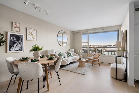 Lys pen 2-roms med flott utsikt. Balkong. Fyring, v.v., fiber inkl.- Parkering*.