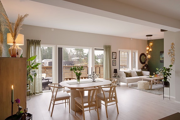Fra stuen er det utgang til veranda og det er også "veranda-kjøkkendør" fra spisestuen.
