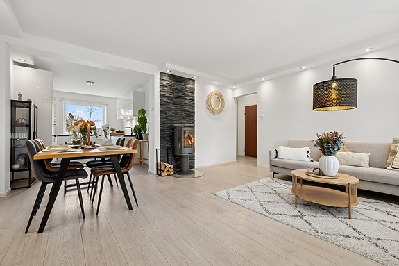 Velkommen til en attraktiv og svært pent oppusset 3-roms med god planløsning og en rekke kvaliteter. Leiligheten ble pusset opp i 2019 med nye overflater og nytt tidløst kjøkken. Kjøkkenet er flyttet ut til stuen og veggen slått ned for å skape en sosial atmosfære i oppholdsrommet. I oktober 2024 ble baderommet rehabilitert i regi av borettslaget, en trygg og profesjonell oppgradering. Her er det gjort gode tilvalg som gir badet et mer eksklusivt og moderne uttrykk.