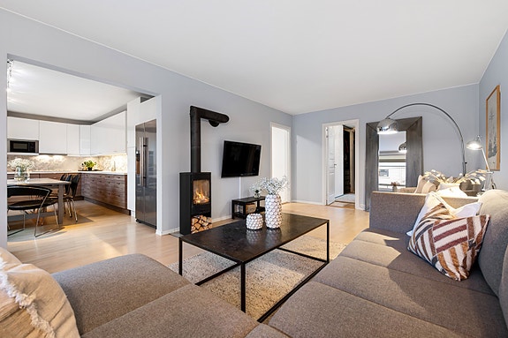 Lys og lekker 4-roms endeleilighet | Solrik og innglasset balkong | Peis | Meget attraktiv beliggenhet