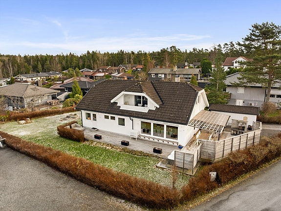 Velkommen til Granlia 9 en innbydende enebolig på to etasjer med gjennomtenkt planløsning og solrik beliggenhet i et rolig, barnevennlig område. Boligen byr på tre (fire) romslige soverom, en lys, luftig og romslig stue med direkte utgang til flotte uteplasser inkludert boblebad og overbygget terrasse med utepeis. Her får du også egen loftstue, som er perfekt for ungdommen, med utgang til veranda, to flislagte baderom, hvor det ene ligger i tilknyning til hovedsoverommet, og et praktisk vaskerom som gjør hverdagen enkel. Eiendommen ligger i attraktive Deør skog i Son, med kort vei til barnehager, skoler og Sonsveien stasjon perfekt for pendlere med togforbindelse til Oslo. En bolig som kombinerer komfort, kvalitet og nærhet til natur og servicetilbud.