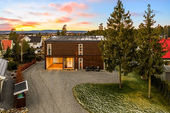 Nyere stilfull og moderne enebolig. Meget god planløsning, 2 flotte bad, 3 soverom. Fin skjermet uteplass og carport.
