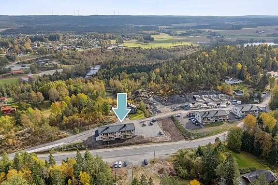 Dette er en helt ny 3- roms selveierleilighet beliggende i 2. etasje på en 8- mannsbolig. Leiligheten inneholder bl.a. 2 soverom og innvendig bod. Det er åpen løsning mellom kjøkken og stue, samt utgang til vestvendt balkong. Det medfølger også en utvendig bod, og egen biloppstillingsplass.