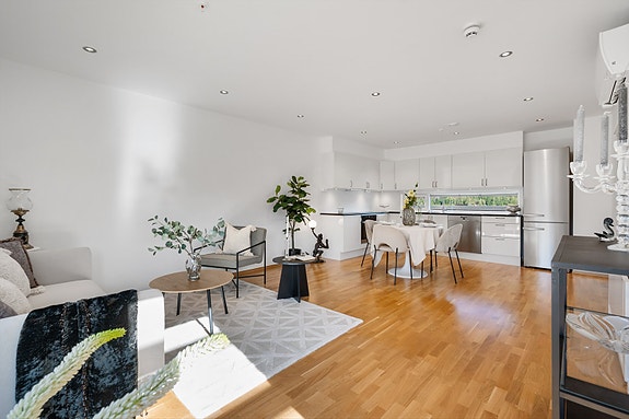 Denne stilfulle selveierleiligheten byr på en gjennomført standard og en lys, trivelig atmosfære. Kjøkkenet er utstyrt med hvite fronter, Miele-hvitevarer og granitt plate, mens gulv av eikeparkett skaper en helhetlig og varm følelse. Badet er lekkert flislagt med granittfliser på gulv, gulvvarme og moderne innredning. Soverommene er romslige og har gode garderobeskap. Beliggenheten på Bogafjell er attraktiv med kort avstand til bussforbindelser, og leiligheten har både heis og egen parkeringsplass i garasjeanlegg. En flott bolig for deg som ønsker kvalitet og komfort.