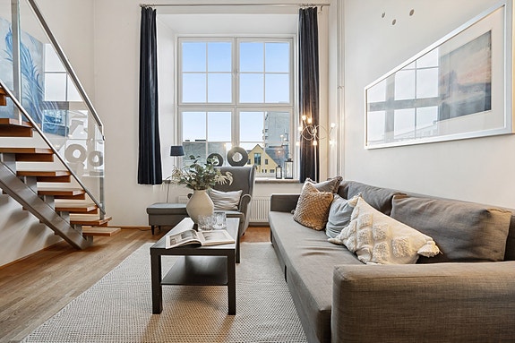 Studioleilighet med særpreg og takhøyde opptil 4m - Heis - Hems på 10m² - Sentral & populær beliggenhet - Fjernvarme
