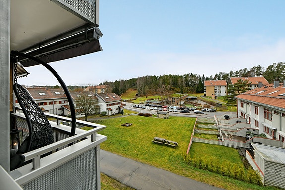 • Solrik balkong med plassbygget utekjøkken og fritt utsyn