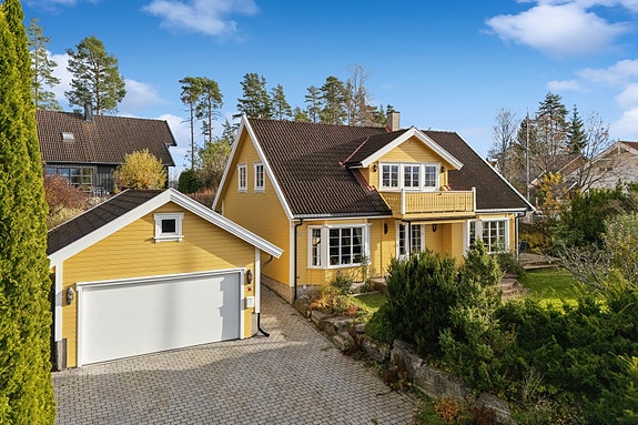 Flott enebolig med garasje | Stor hage og solrike uteplasser | Barnevennlig beliggenhet | 4 soverom | 2 bad