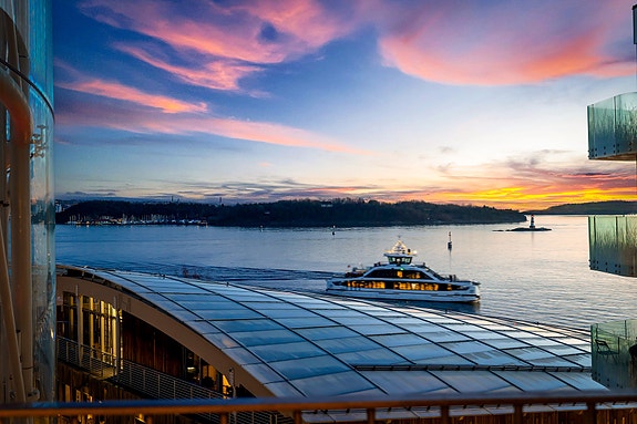 Velkommen til Tjuvholmen allé 21 - presentert av Jon Kvisgaard v/ Privatmegleren Dyve & Partnere. Her ser man bilde fra leilighetens balkong. Foto: Benjamin, Studio Oslo