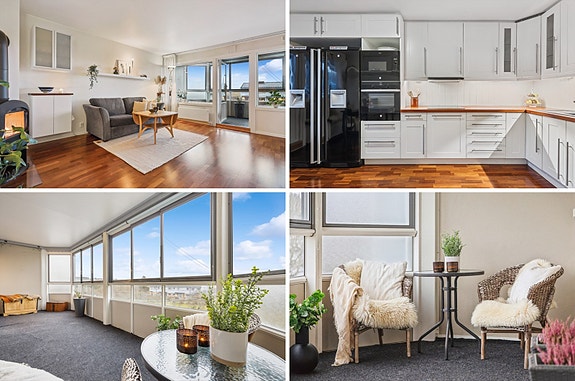Lys og romslig 3-roms leilighet med stor innglasset balkong og terrasse. Garasjeplass.