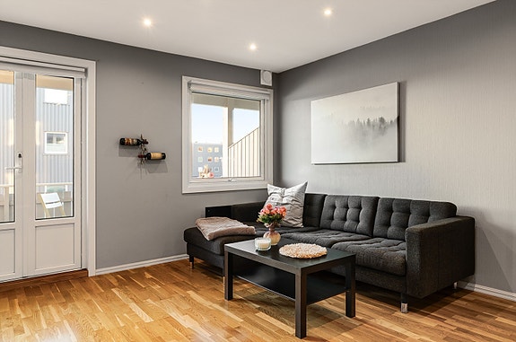 - Stuen har godt lysinnslipp og utgang til en lun og sørvendt balkong