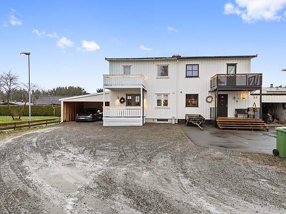 Setervegen 55 er en vertikaldelt tomannsbolig med carport. Eiendommen ligger i enden av rekken på en blindvei - midt på Ørmelen, med gangvei rett til skole.
