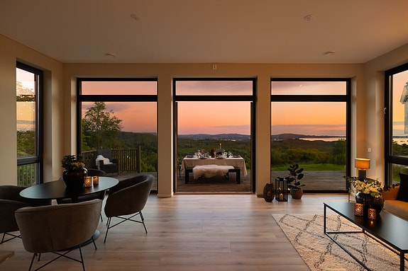 Strøken funkisenebolig på ett plan fra 2023 | magisk utsikt | Svært gode solforhold | 2 bad | 4 sov | God biloppstilling