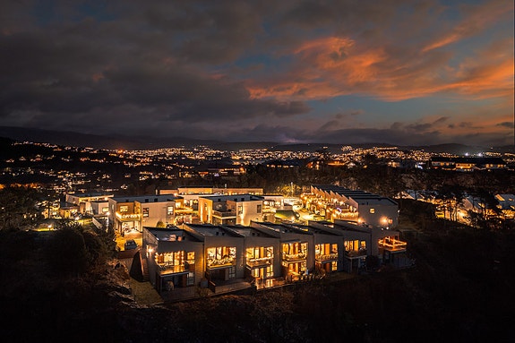 Strøkent rekkehus på toppen av Straumsåsen med 2 bad og 3 soverom fra 2020. Vestvendte og solrike uteplasser.
