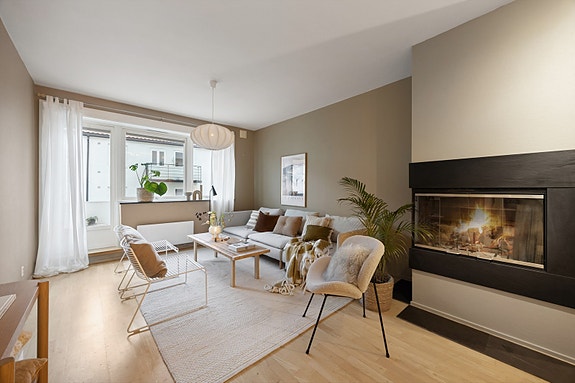 Tiltalende stor 4-roms på 98 kvm - 2 solrike balkonger - 2 ildsteder - Vinduer nye 2017 - Rolig og attraktiv beliggenhet