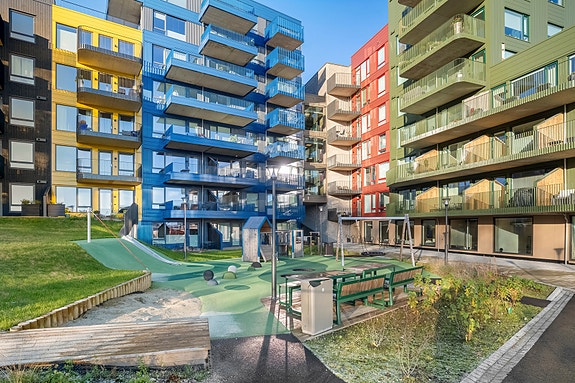 "Fargehusene" sto ferdige i 2024 og byr på moderne arkitektur og gjennomgående høy standard.
