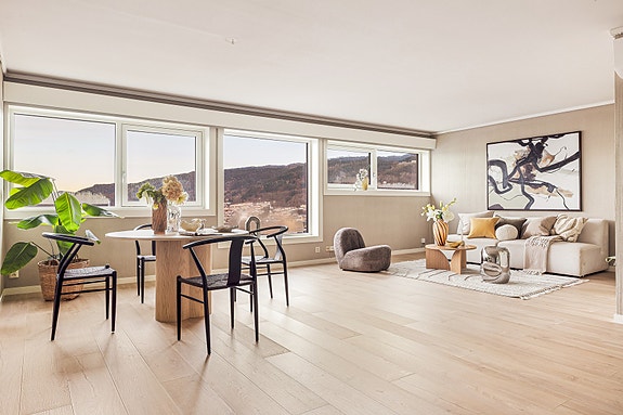 Lys og flott 4-roms med nydelig utsikt! Varmtvann inkl. Heis. Egen parkeringsplass i garasjeanlegg. Ingen forkjøpsrett!