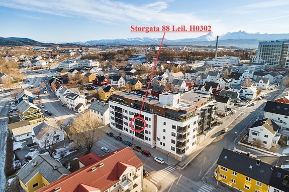 Velkommen til Storgata 88, leilighet H0302, beliggende i populære Sentrumshagen. Her får du en gjennomført og moderne selveierleilighet med svært god intern beliggenhet i bygget. Leiligheten har utsikt mot nordvest, og byr på nydelig ettermiddags- og kveldssol. Ønsker du sol tidligere på dagen, har sameiet en flott felles takterrasse som har solforhold store deler av dagen i sommerhalvåret. Leiligheten fremstår som lys og innbydende, med et romslig og godt utstyrt kjøkken. Det er moderne og tidsriktige overflater gjennom hele leiligheten, og nedfelte konvektorer i gulv med fjernvarme sørger for en behagelig og energieffektiv oppvarming. Praktisk parkeringsplass i garasjekjeller med enkel adkomst via heis eller trapp opp til 3. etasje, hvor leiligheten ligger. Sameiet kan også by på en koselig bakhage med grønne fellesarealer. Er du på jakt etter en moderne selveierleilighet i et veletablert og veldrevet sameie, er dette absolutt verdt et besøk. Velkommen på visning!