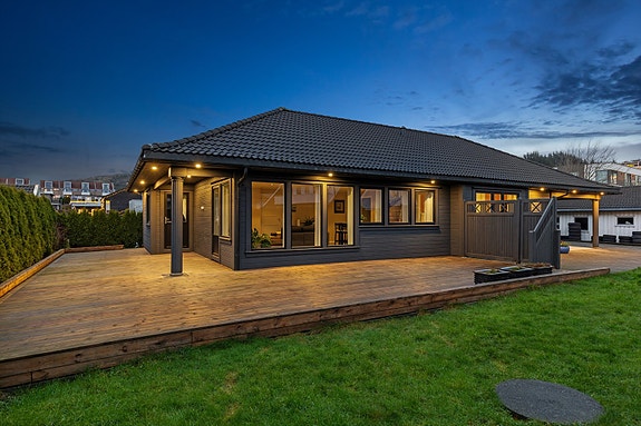 Flott enebolig fra 2005 med alt på ett plan | Stor terrasse og solrik skjermet hage | Carport | Barnevennlig område
