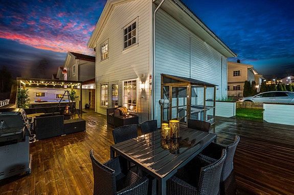 DNB Eiendom v/ Kasper Gulbrandsen og Lisa Aafloen presenterer Lilloveien 144 - påkostet enebolig i kjede fra 2015. Boligens beliggenhet på enden gir deg stor terrasse som strekker seg rundt boligen med inngjerdet hageflekk. Her er det i tillegg jacuzzi, skjermet bak levegg og under pergola.