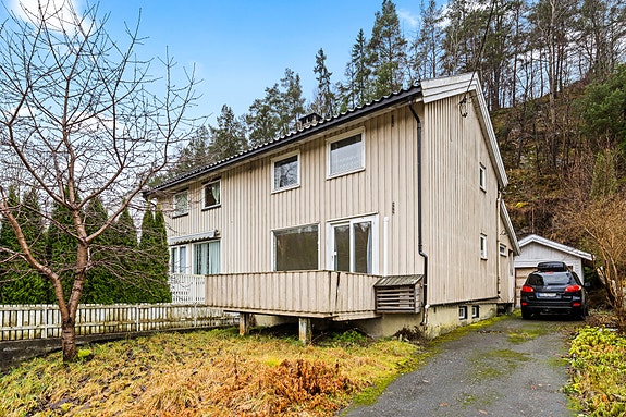Oppussingsobjekt med stort potensiale | Halvparten av vertikaldelt tomannsbolig | Egen garasje | Rolig og barnevennlig