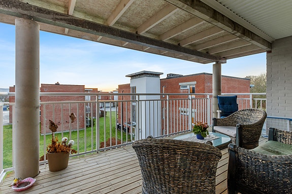 - Romslig balkong med takoverbygg