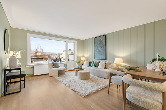 Lys og gjennomgående 3-roms |Garasje ink.| Balkong med flott utsikt|Bad fra 2022|Vv og fyring inkl.