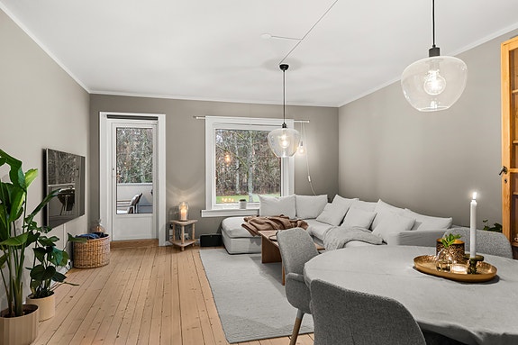 Boligen er velholdt og fremstår moderne med bl.a helsparklede vegger og tidsriktig fargevalg, samt sjarmerende originale tregulv. Tregulv bidrar til en varm og lun atmosfære. Leiligheten ligger skjermet til, omgitt av grønne fellesarealer, lekeplass og sittegrupper.