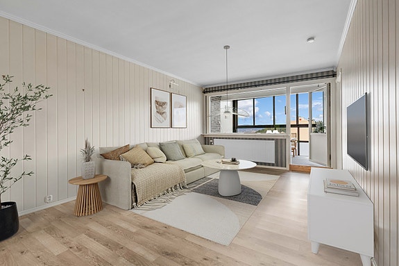 Velkommen til Lauritz Hervigs vei 88 C - presentert av Ken Thomas Fredriksen, V. PrivatMegleren Dyve & Partnere. (Bildet er digitalt stylet).