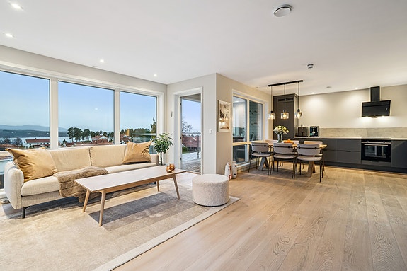 Nyere 4-roms fra 2021 med sørvendt utsikt | Vannbåren gulvvarme | To garasjeplasser | Moderne