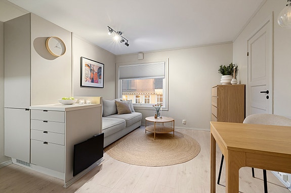 Lys og arealeffektiv leilighet i 5 etasje | Heis | Varmtvann og bredbånd inkl. | Flott beliggenhet | 2 boder
