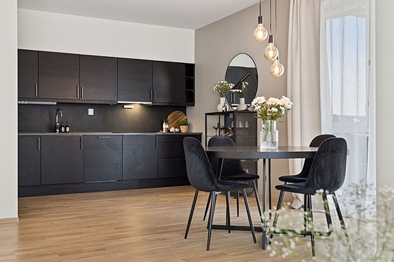 Aktiv Eiendomsmegling v/Christian Drøyvold har gleden av å presentere Håkon Magnussons gate 1B - en moderne og innbydende 3-roms leilighet. Dette er en lys og trivelig bolig med gjennomtenkte løsninger og moderne farger. Foto/digital styling: Vidar Alvik.