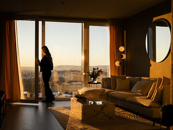Her er en sjelden mulighet for deg som ønsker en utsiktsleilighet i en klasse for seg. Boligen kombinerer høy og moderne standard med heis, en gjennomtenkt og unik planløsning - og ikke minst en av byens mest imponerende utsikter.