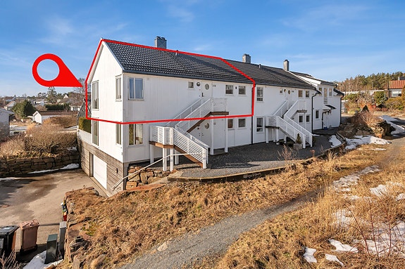 Velkommen til Eineråsen 25! Leiligheten ligger i hovedetasjen og har en stor veranda hvor du kan nyte flotte dager!