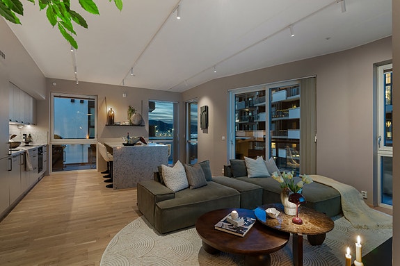 Proaktiv Eiendomsmegling ved Tore Resell har gleden av å presentere en delikat og påkostet hjørneleilighet fra 2021 med attraktiv beliggenhet på Øvre Nyhavna. Leiligheten holder en gjennomgående høy standard og byr på store vindusflater som gir rikelig med naturlig lys samt flott utsikt mot havna.