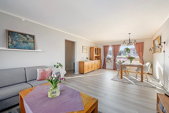 Leiligheten fremstår som lys og tiltalende, og har en arealeffektiv og god planløsning med romslige og fine rom.