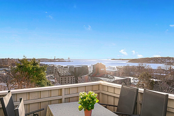 Stor familiebolig over tre etasjer med flott sjøutsikt og god planløsning. Garasje. Sentral beliggenhet.